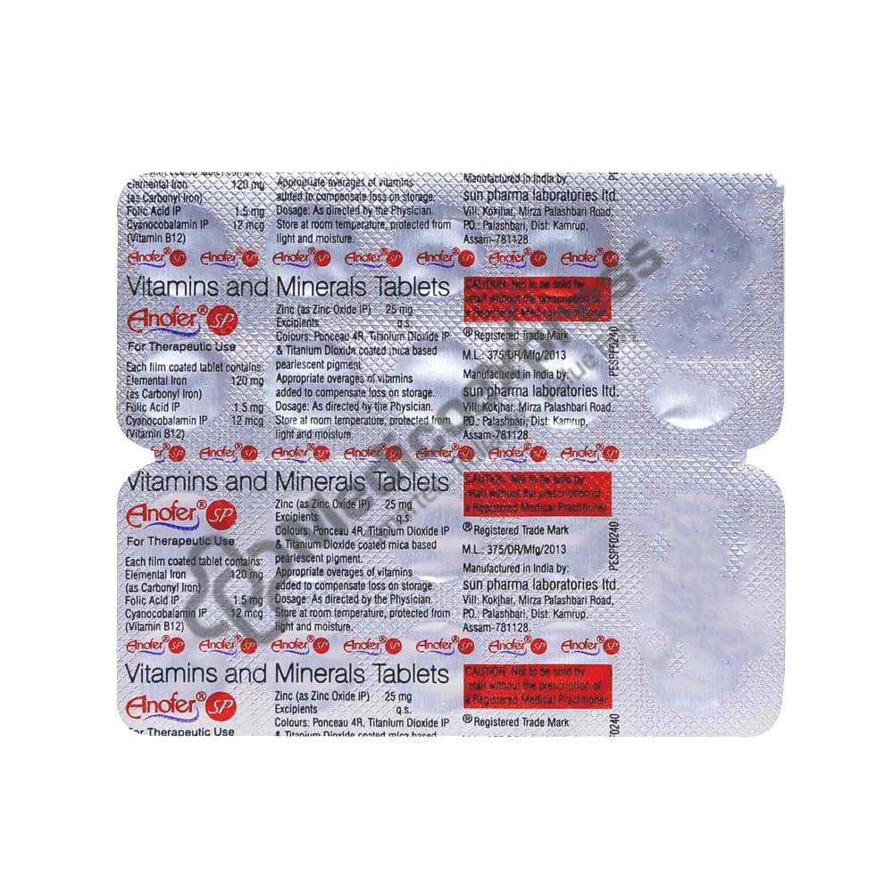 Anofer SP Tablet 10's nutritional supplements that are used to treat and prevent nutritional deficiencies such as iron deficiency anaemia, iron deficiency due to low iron intake, or iron/nutritional deficiency that occurs during pregnancy and lactation.Disclaimer:For More Information Contact Your Physician