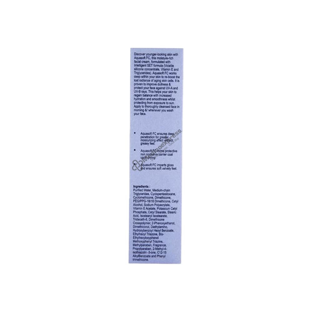 Aquasoft Fc Cream 100 gm is used to treat a variety of skin ailments, including blemishes, skin redness, burns, minor wounds, insect bites, and skin rashes. Patients with delicate skin will benefit greatly from it. The topical cyclotetrasiloxane moisturises and softens the skin. Methylparaben has antifungal and antibacterial properties, and Vitamin E protects the skin by acting as an antioxidant. Skin that is rough and itching can be treated with dimethicone. utilised to stop mild skin irritants. used when a child has diaper rash. specialises in treating radiation burns to the skin.Disclaimer:For more information contact your physician.