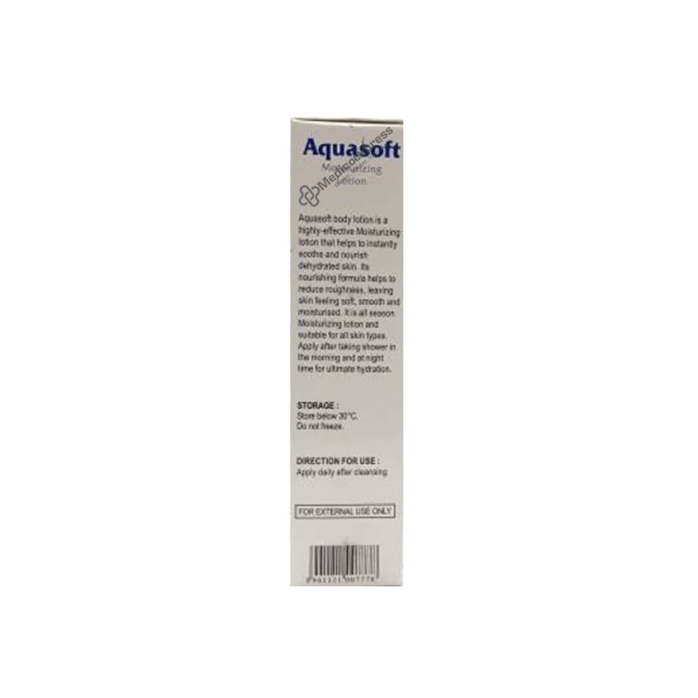 Aquasoft Moisurizing Lotion 100 ml keeps the skin hydrated and moisturised. By supplying enough moisture, it enhances the quality and health of the skin. In addition to fighting free radical damage, it provides additional moisturiser for skin that feels soft and silky. Additionally, it improves the skin's health and vitality and delays the premature ageing of the skin. minimises irritability and skin drynessDisclaimer:For more information contact your physician.