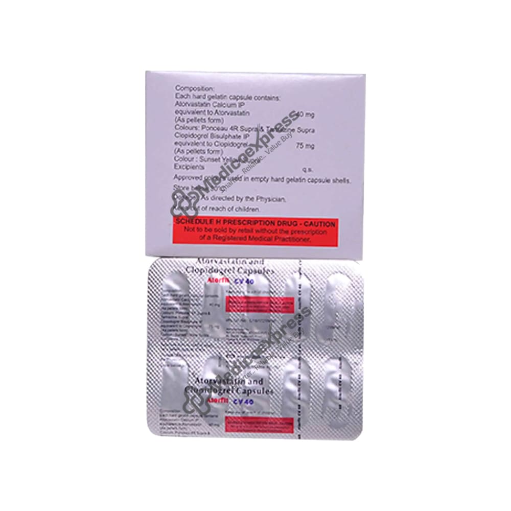 Atorfit CV 40 Capsule 10's is a combination drug made up of a blood thinner and a cholesterol-lowering agent that is primarily used to prevent future heart attacks and strokes.Disclaimer:For More Information Contact Your Physician