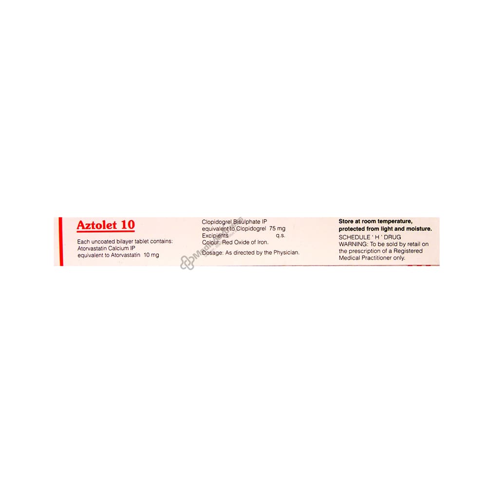Aztolet 10 Tablet 10's is a combination drug made up of a blood thinner and a cholesterol-lowering agent that is primarily used to prevent future heart attacks and strokes.Disclaimer:For More Information Contact Your Physician