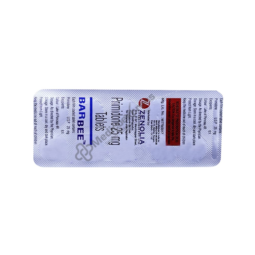 Barbee-25mg tab 10's is an anticonvulsant drug that is used to regulate different epileptic disorders (fits), prevent seizures, and treat shaking episodes (essential tremor).Disclaimer:For more information contact your physician