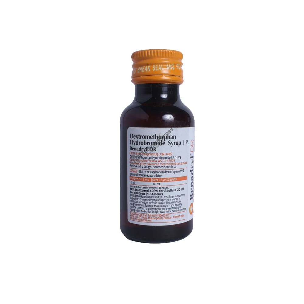 Benadryl Cough Formula Syrup 51 ml belongs to a class of cough medications known as "expectorants." Coughing (dry or productive) is the body's way of clearing irritants from the airways and preventing infection. Coughs are classified into two types: dry cough and chesty cough.Disclaimer:For More Information Contact Your Physician