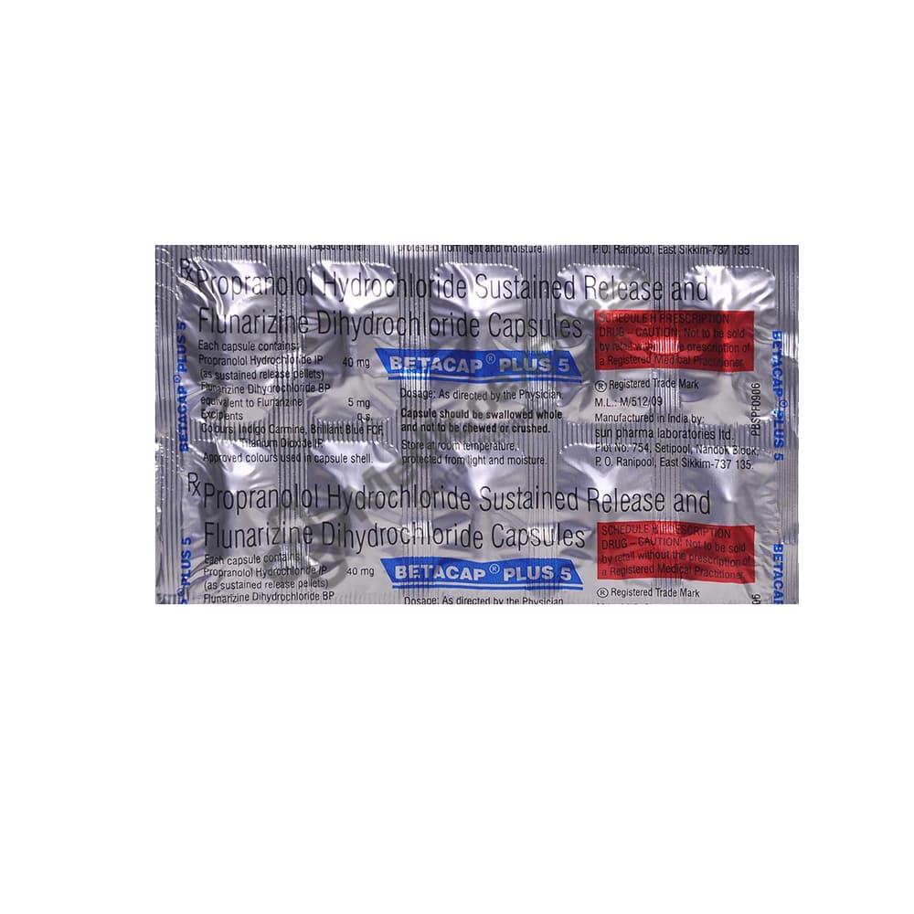 Betacap Plus 5 Capsule 10's is a 'anti-migraine drug' that is primarily used to treat migraine. Migraine is a medical condition in which one side of the head experiences severe throbbing pain or a pulsing sensation.Disclaimer:For More Information Contact Your Physician