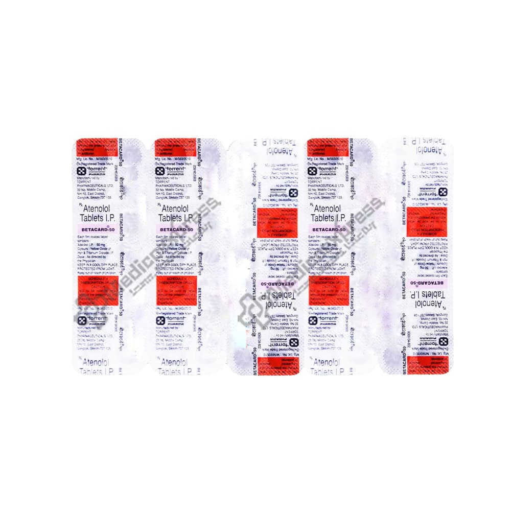 Betacard-50 Tablet 14’s belongs to a class of medications known as 'antihypertensive agents,' which are used to treat high blood pressure.Disclaimer:For more information contact your physician