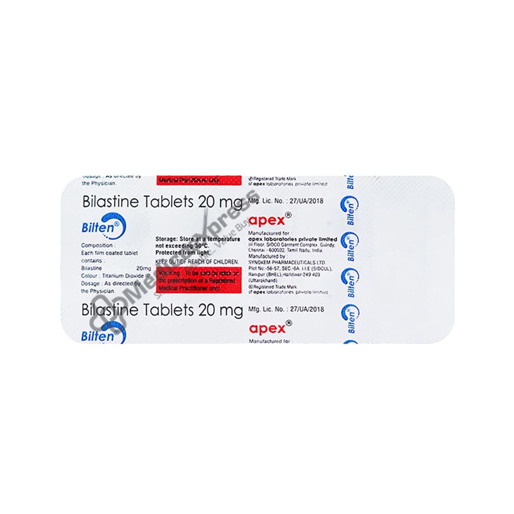 BILTEN Tablet 10's is used to treat several types of allergic rhinitis, including hay fever, which is typically brought on by an allergen such as pollen, dust, mould, or flakes of certain animals' skin. Hay fever symptoms include sneezing, itching, runny and stuffy noses, and red or watery eyes.Disclaimer:For more information contact your physician.