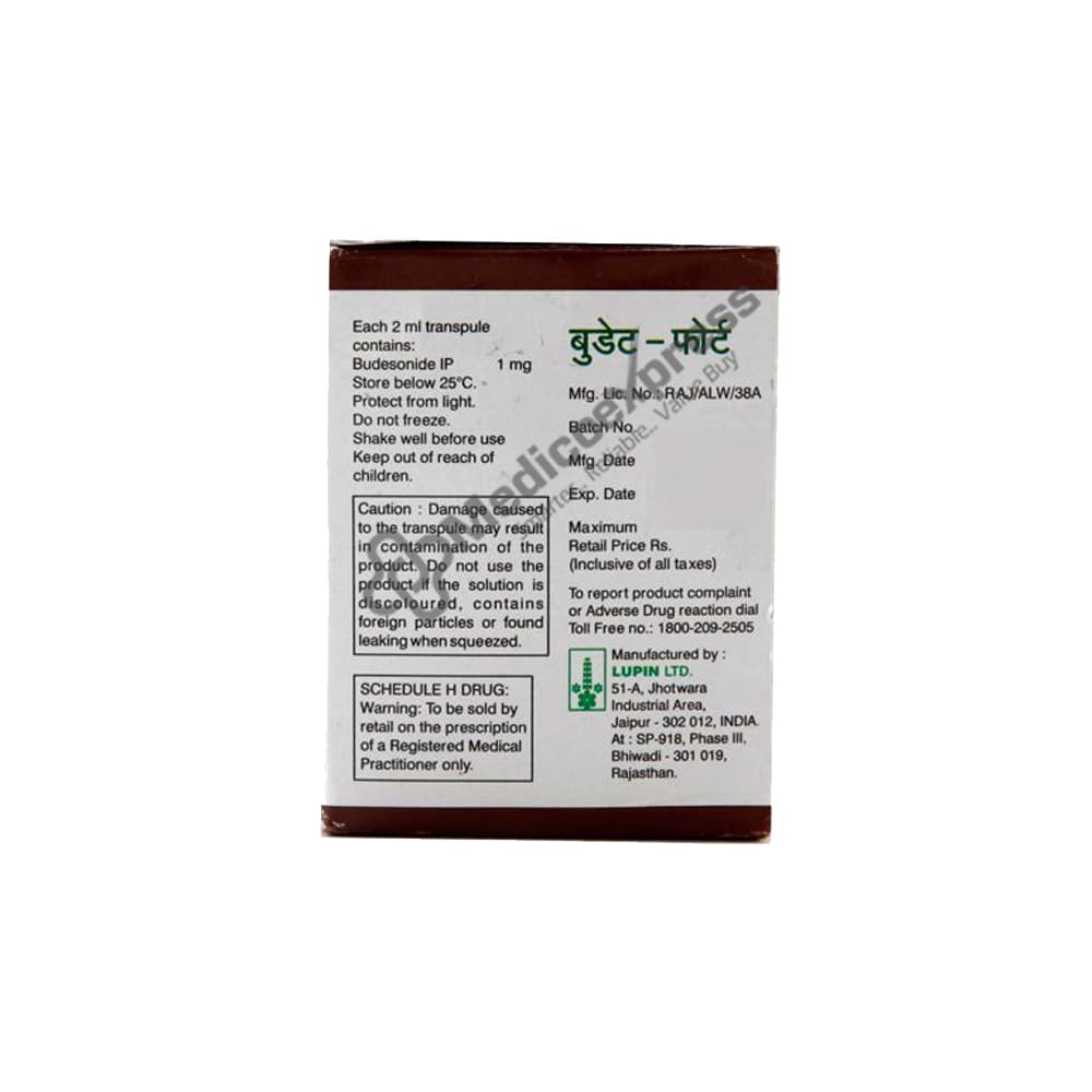 Budate forte transpules 2ml helps to prevent asthma symptoms (wheezing and shortness of breath). It's a steroid that's referred to as a "preventer." A fast-acting "reliever" is also necessary because this medication won't stop an asthma attack that has already begun. How frequently you should use Budate Forte Transpules 2ml will be determined by your doctor. You should use the lowest dosage necessary to properly control your asthma. The impact of this medication may be felt within a few days, but it won't be fully felt for several weeks. Continue taking this medication even if you are not experiencing any side effects because it must be taken consistently to be effective.Disclaimer:For more information contact your physician.
