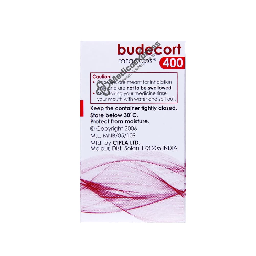 Budecort 400 rotacaps contain budesonide, a steroid used to treat asthma. It is used to keep asthma symptoms under control and to prevent the development of asthma. It aids in the control of daily symptoms such as shortness of breath, wheezing, and chest pain, as well as the prevention of exacerbations.Disclaimer:For More Information Contact Your Physician