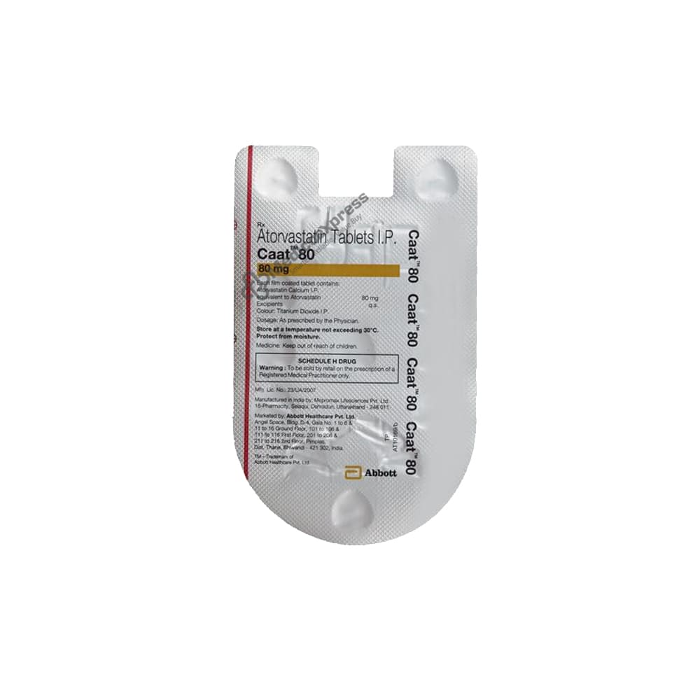CAAT 80MG TABLET contains Atorvastatin, a medication in the Lipid-lowering drug class. When diet and lifestyle changes do not produce an adequate response, it is used to reduce elevated high blood cholesterol levels (hyperlipidaemia) in patients.Disclaimer:For More Information Contact Your Physician