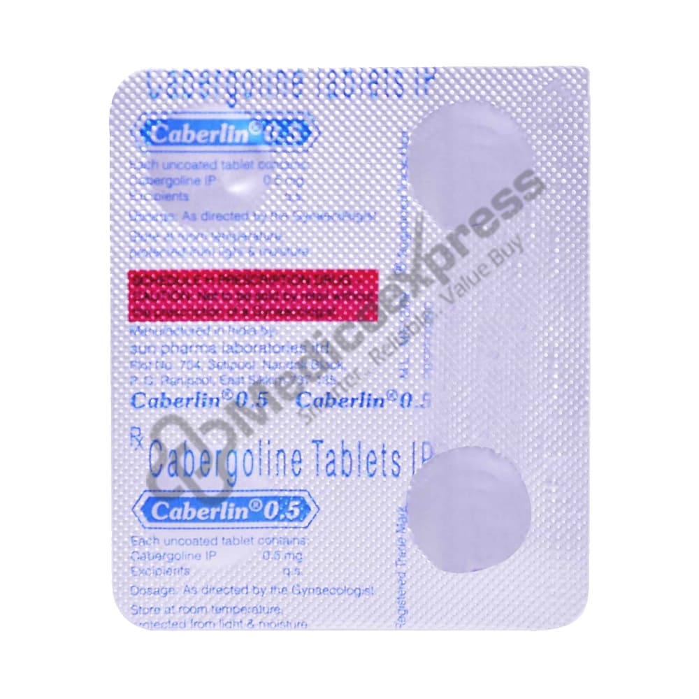 Cabergoline is the active ingredient in Caberlin 0.5 Tablet 4s. This medication is classified as a 'dopamine agonist.' Dopamine is produced naturally in the body and aids in signalling to the brain, thereby treating hyperprolactinemia (high levels of prolactin, a natural substance that allows breast development and milk production in women).Disclaimer:For More Information Contact Your Physician