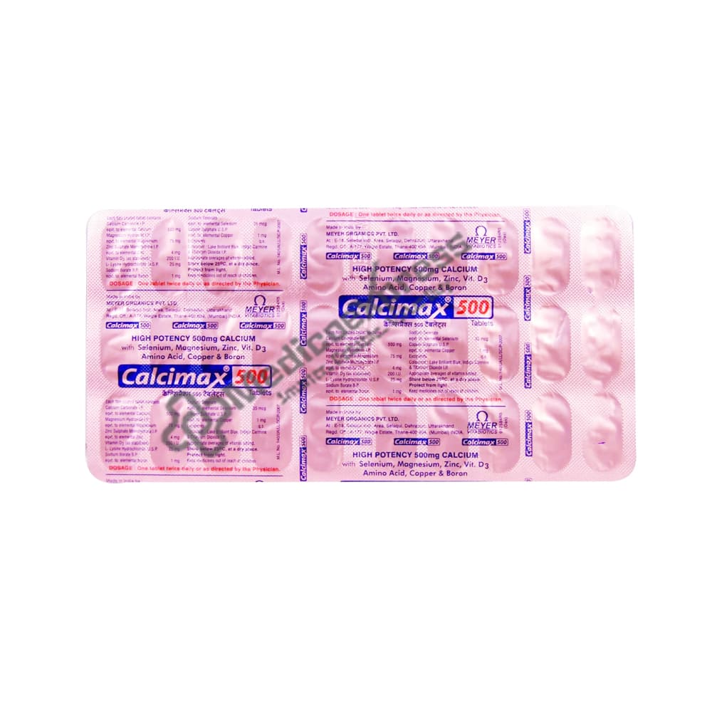 Calcimax 500 Tablet Is a Dietary Supplement That Promotes Bone Health And Helps To Prevent Bone Demineralization.Disclaimer:For More Information Contact Your Physician
