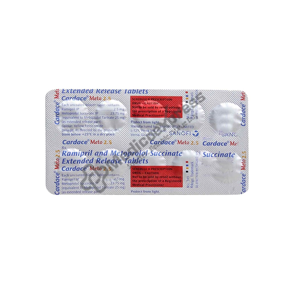 Cardace meto 2.5mg tablet 10’s a combination medication that contains enalapril (ace inhibitors) and propranolol (a beta blocker) (beta-blocker). It addresses excessive blood pressure as a whole and reduces the likelihood of eventual heart failure or stroke.Disclaimer:For more information contact your physician