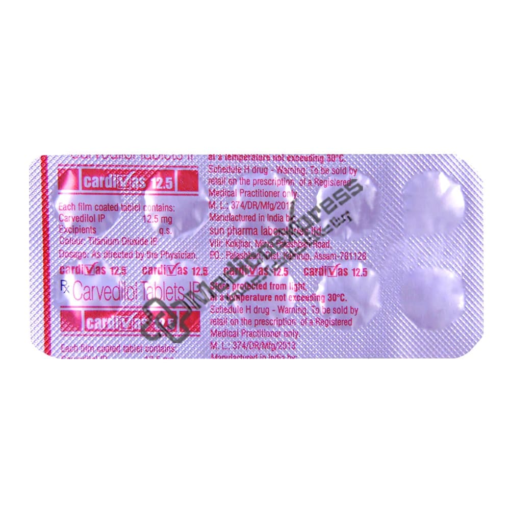 Cardivas 12.5 Tablet 10’s a Beta-Blocker Antihypertensive Medication Used To Treat Hypertension (High Blood Pressure), Moderate To Severe Heart Failure, And Angina (Heart-Related Chest Pain).Disclaimer:For More Information Contact Your Physician