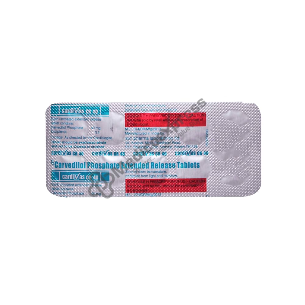 Cardivas Cr 40Mg Tablet 10’s a Beta-Blocker Antihypertensive Medication Used To Treat Hypertension (High Blood Pressure), Moderate To Severe Heart Failure, And Angina (Heart-Related Chest Pain).Disclaimer:For More Information Contact Your Physician