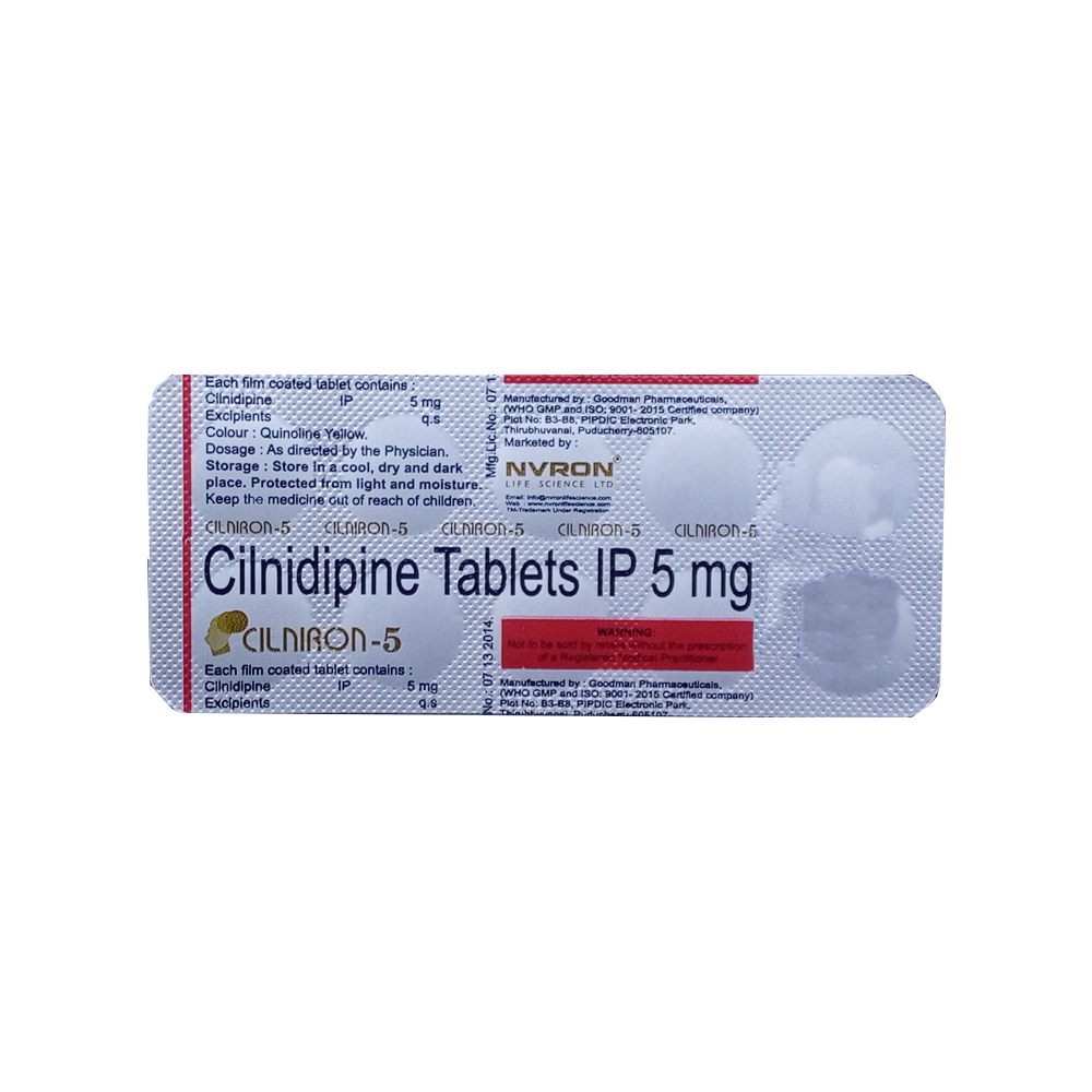 CILNIRON 5mg Tablet 10's Belongs To a Class Of Drugs Known As Calcium Channel Blockers, Which Are Primarily Used To Treat Hypertension (High Blood Pressure) And Angina (Chest Pain).Disclaimer:For More Information Contact Your Physician