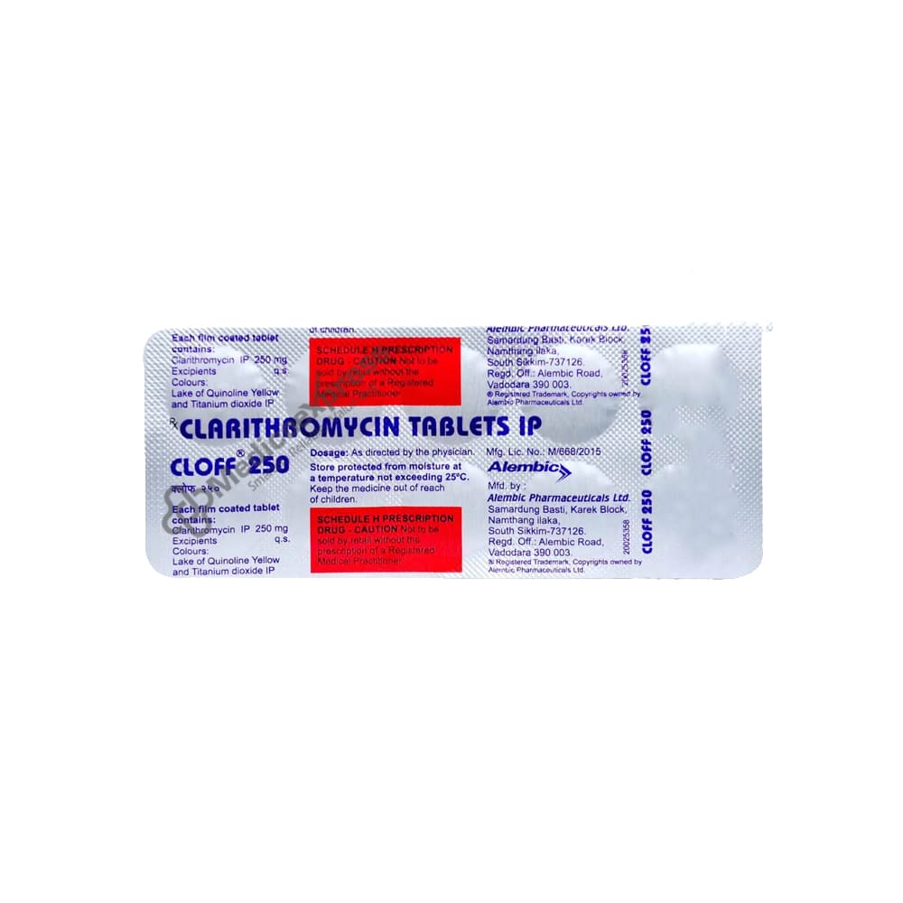 Cloff 25 Tablet 10's is a macrolide antibiotic derived from Saccharopolyspora erythraea (originally called Streptomyces erythreus) that is used to treat a wide range of bacterial infections, including bronchitis and pneumonia, as well as skin problems such as cellulitis (potentially serious bacterial skin infection). The affected skin is swollen and red, and it is usually painful and warm to the touch), as well as ear infections.Disclaimer:For More Information Contact Your Physician