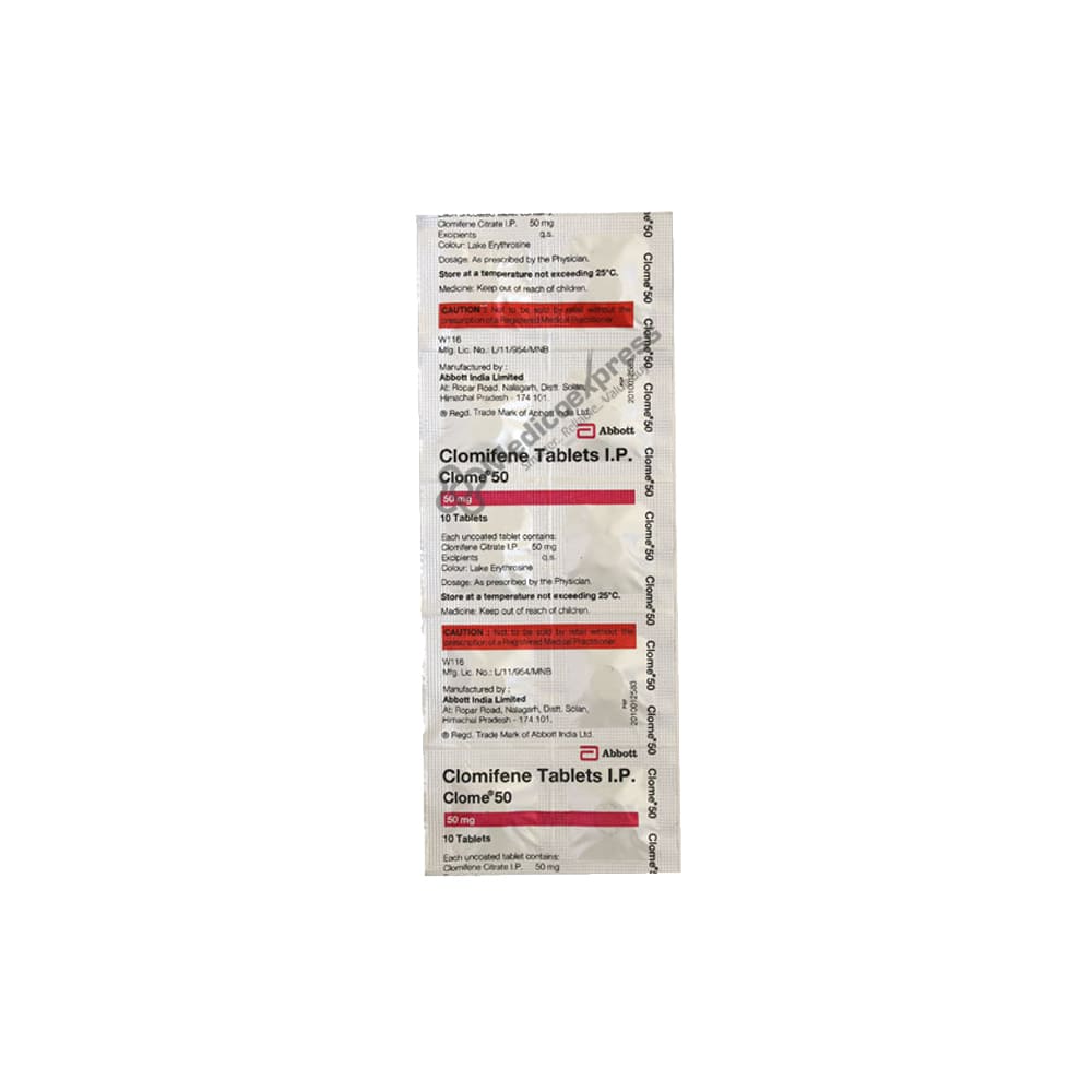 Clome 50 Tablet 10's is an ovulation stimulant medication used to treat infertility in women who are not ovulating (producing an egg) properly or have an irregular or no menstrual cycle. Ovulation issues are a common cause of female infertility.Disclaimer:For More Information Contact Your Physician