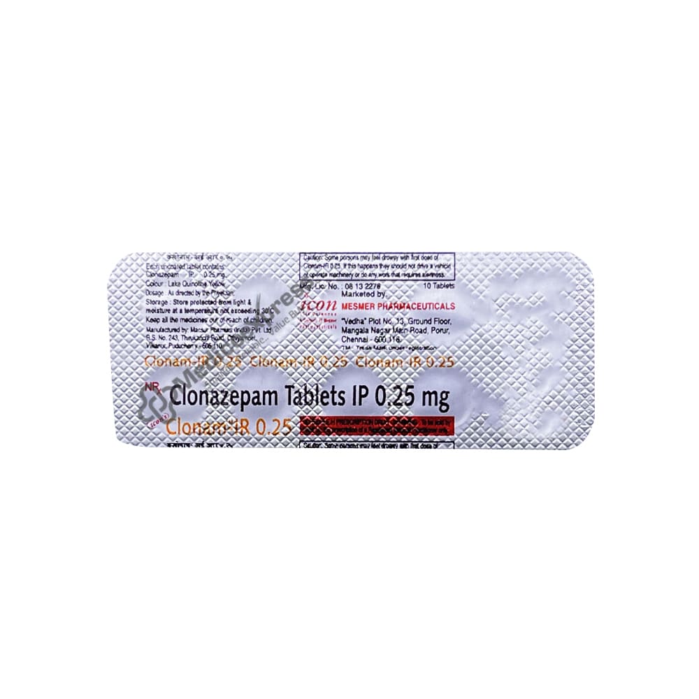 CLONAM IR 0.25MG TAB Tablet is a medicine that contains clonazepam.Disclaimer:For More Information Contact Your Physician