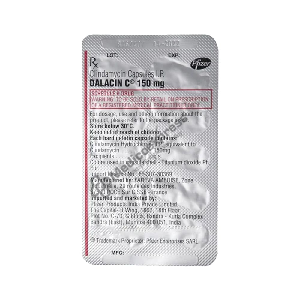 Dalacin c 150 capsule 10's an antibiotic that is primarily used to treat bacterial infections.Disclaimer:For more information contact your physician