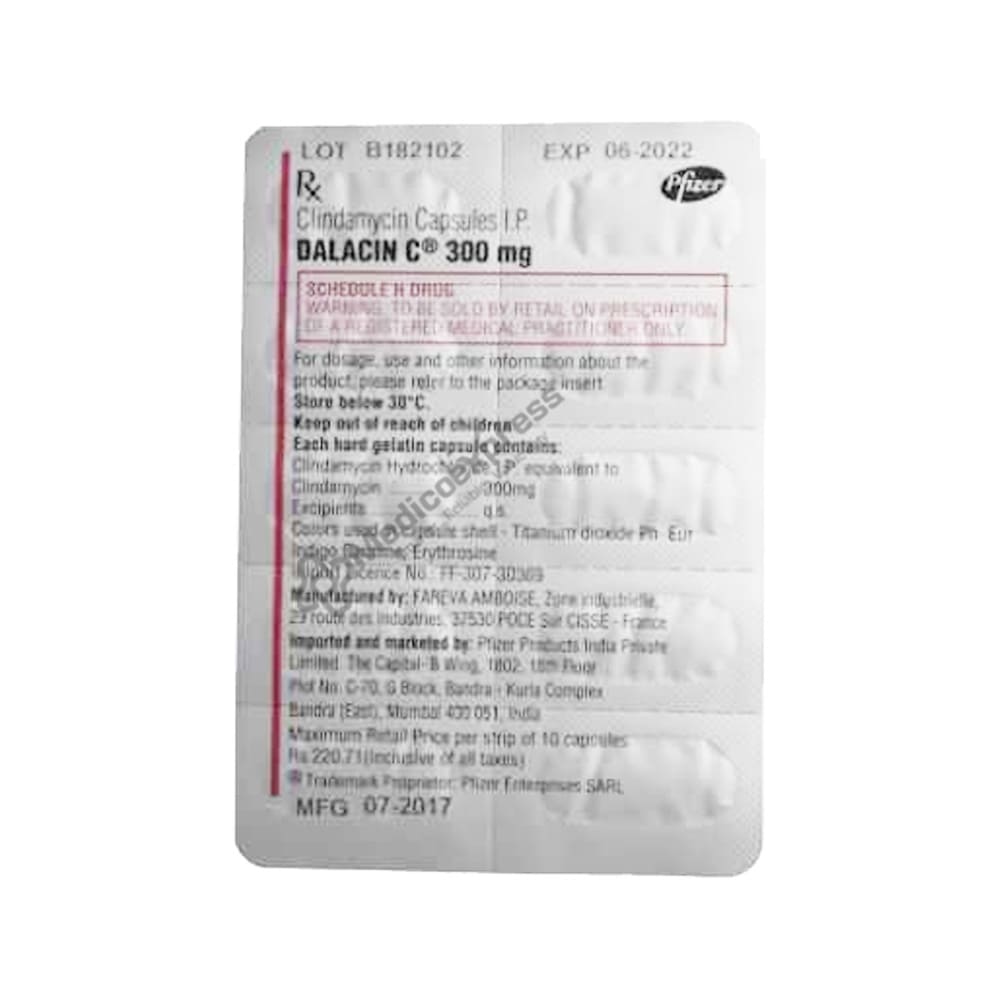 Dalacin c 300 mg capsule 10's an antibiotic that is primarily used to treat bacterial infections.Disclaimer:For more information contact your physician