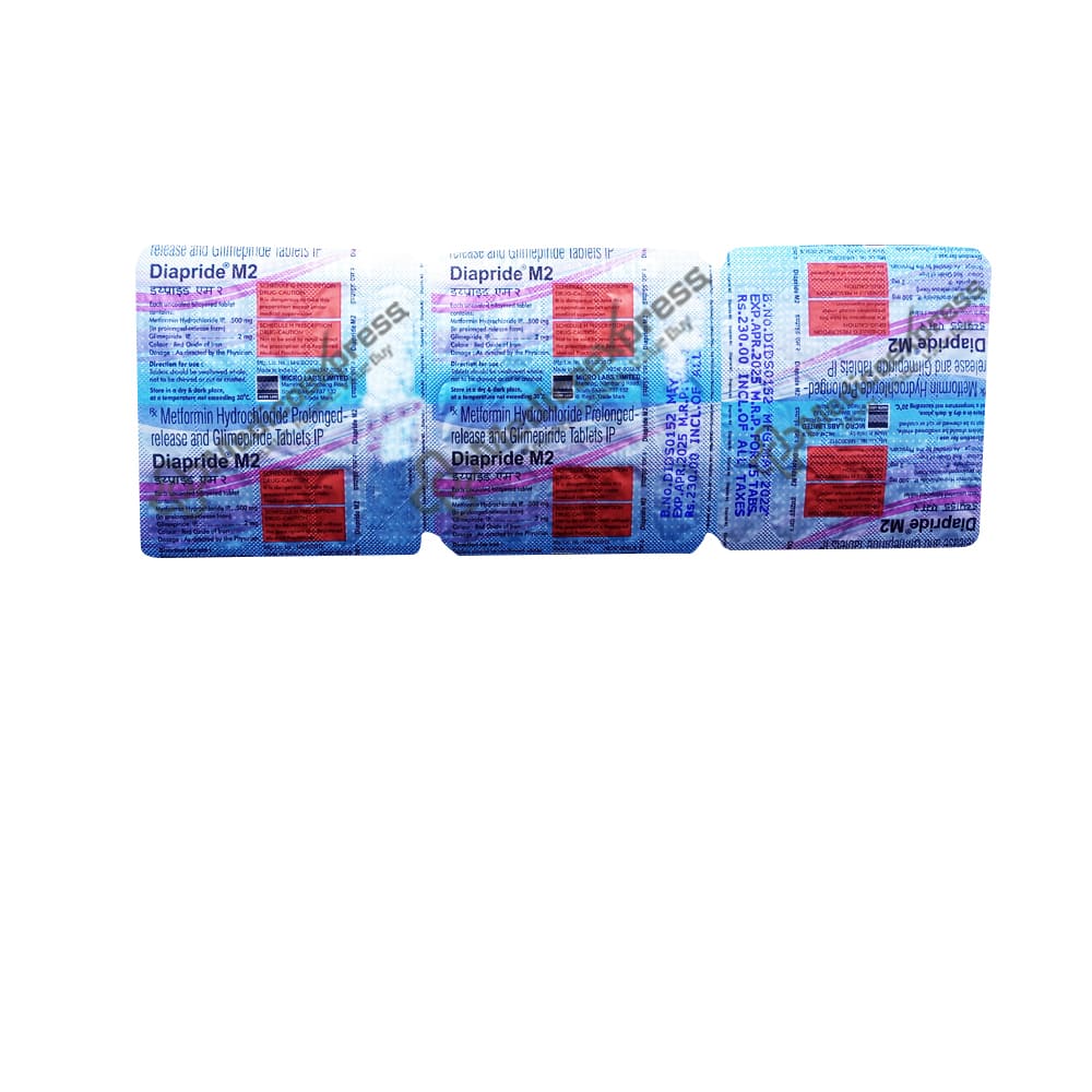 Diapride M2 Tablet 15's belongs to a class of drugs known as anti-diabetic drugs, which are used to treat type 2 diabetes, particularly in patients whose blood sugar levels are not controlled by diet and exercise alone.Disclaimer:For More Information Contact Your Physician