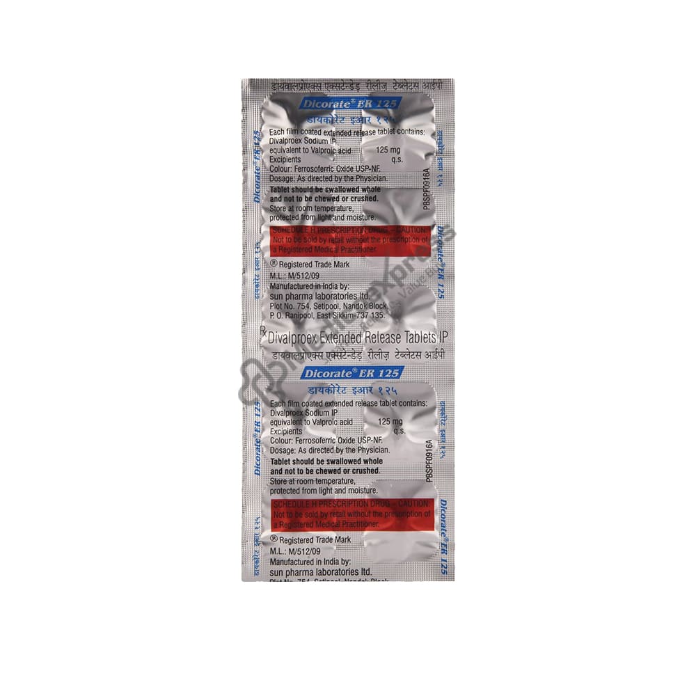 Dicorate ER 125 Tablet 10's is an anticonvulsant or anti-epileptic medication used to treat epilepsy/seizures/fits.Disclaimer:For More Information Contact Your Physician