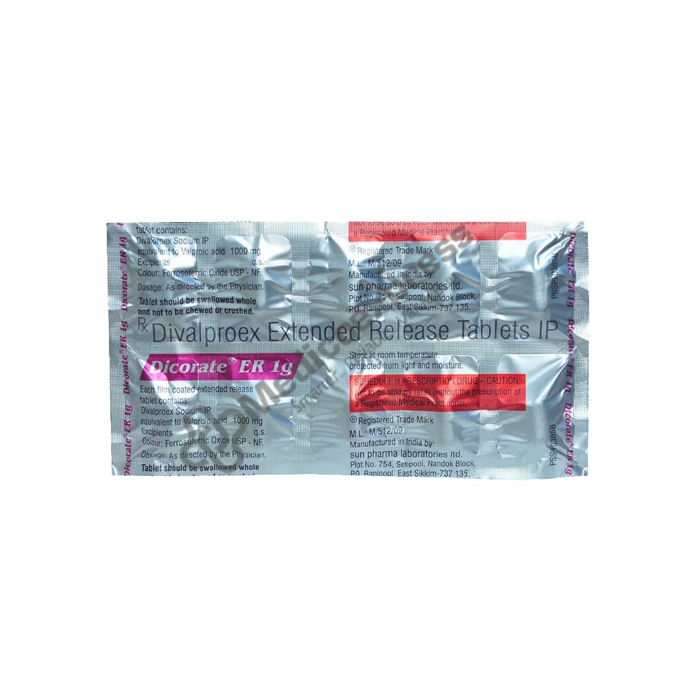 Divalproex sodium, which is found in DICORATE ER NF 1000 MG, is an anti-epileptic drug. It is a sodium valproate and valproic acid-based stable coordination compound used to treat manic episodes associated with bipolar disorder, epilepsy, and migraine headaches.Disclaimer:For More Information Contact Your Physician