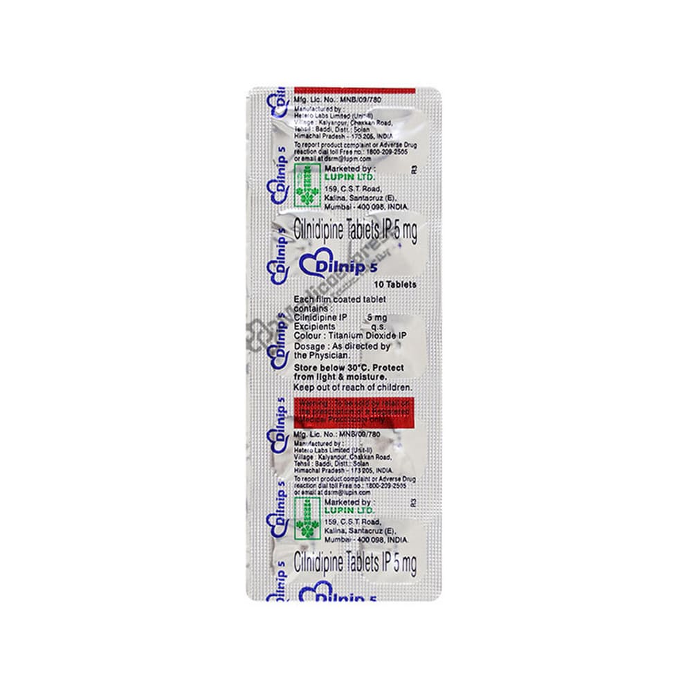 Dilnip 5mg Tablet 10's Belongs To a Class Of Drugs Known As Calcium Channel Blockers, Which Are Primarily Used To Treat Hypertension (High Blood Pressure) And Angina (Chest Pain).Disclaimer:For More Information Contact Your Physician