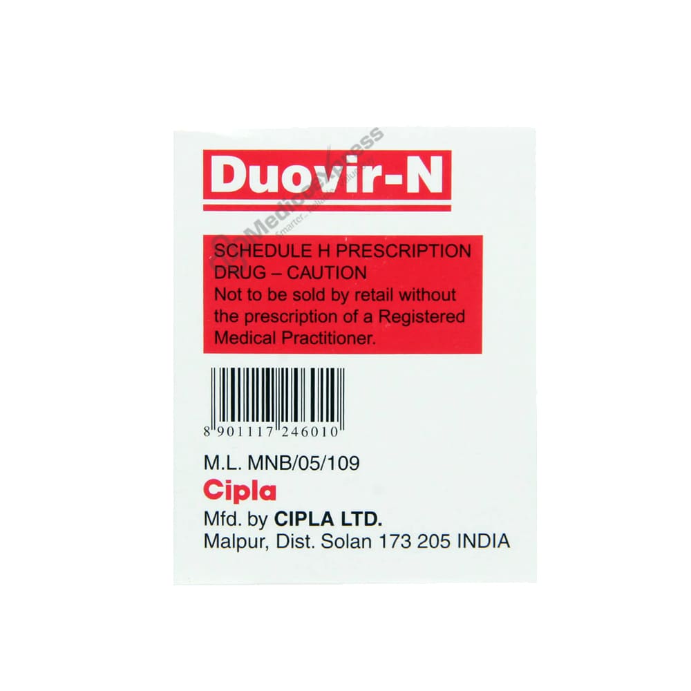 Duovir N Tablet 30 consists of three medications: lamivudine, zidovudine, and nevirapine. It works by preventing the HIV (virus) from multiplying, reducing the amount of virus in your body and increasing the CD4 cell count (white blood cells that protect against infection) in your blood. $ name of a drug that is commonly used to treat HIV infection.Disclaimer:For More Information Contact Your Physician