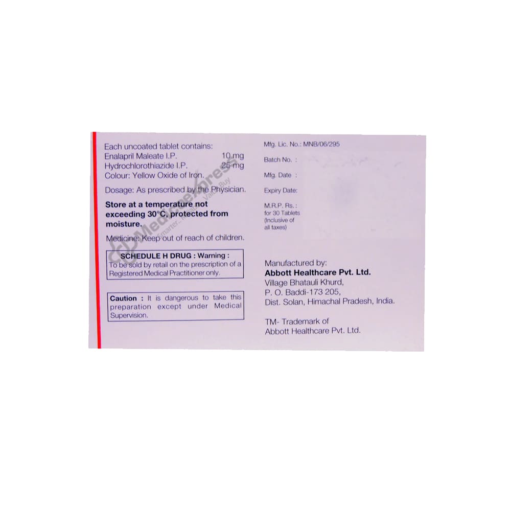 ENACE D 10MG TABLET 30S is an anti-hypertensive medication that is primarily used to treat hypertension (high blood pressure). Hypertension is a condition in which the blood's force against the artery walls becomes so great that it causes health problems such as heart disease.Disclaimer:For More Information Contact Your Physician