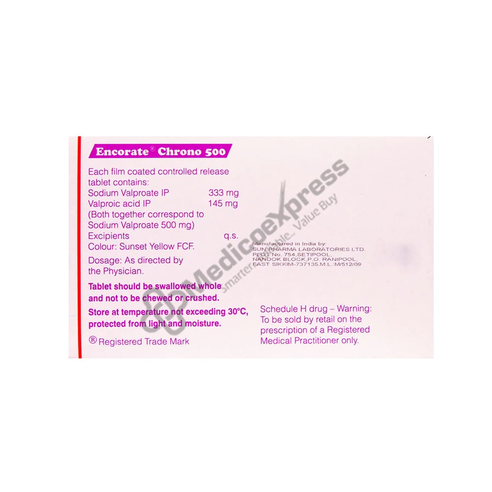 Encorate Chrono 500mg Tablet 10's is an anticonvulsant or anti-epileptic medication that is primarily used to treat epilepsy/seizures/fits.Disclaimer:For More Information Contact Your Physician
