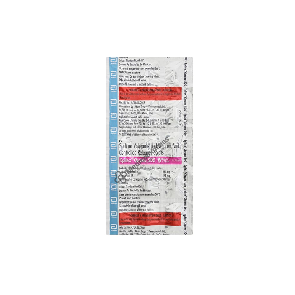 Epilex Chrono 500 mg Tablet 15's contains sodium valproate and valproic acid, both of which are considered anticonvulsant/antiepileptic drugs. Both adults and children who have epilepsy are treated with it. The treatment of bipolar disorders also involves it. The neurological system and brain experience aberrant electrical activity in epilepsy. Temporary confusion, muscle stiffness, jerky movements in the arms or legs, loss of consciousness, psychological symptoms (such anxiety or terror), etc., may also be present. Patients with liver issues or those who have a family history of liver issues should not take EPILEX Chrono 500mg Tablets. Patients with blood clotting or coagulation disorders, pancreatic diseases (inflammation of the pancreas), urea cycle disorders (a hereditary condition that affects the skin or nervous system), and porphyria are also not advised to take this medication.Disclaimer:For more information contact your physician.