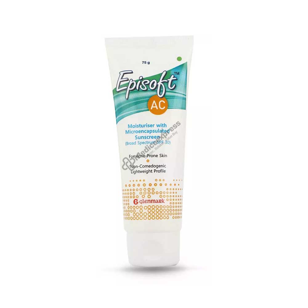 Episoft AC Sunscreen Cream is a skin moisturiser with sunscreen potential. Its distinctive formulation might assist in hydrating dry and rough skin. It works well to block harmful ultraviolet A and ultraviolet B radiation and is especially developed for skin that is prone to acne. It is an irritation- and paraben-free cream that has undergone dermatological testing. Disodium EDTA, which helps the skin hold more water, holds more moisture. It is suitable for both face and body and is easily absorbed by the skin, which helps to hydrate, soothe, and hydrate the skin to prevent moisture loss. This cream moisturises the skin, leaving it feeling silky, smooth, and supple. It guards against scaliness, chipping, and drying of the skin. A unique aqueous dispersion sunscreen is microencapsulated in Episoft AC cream.Disclaimer:For more information contact your physician.