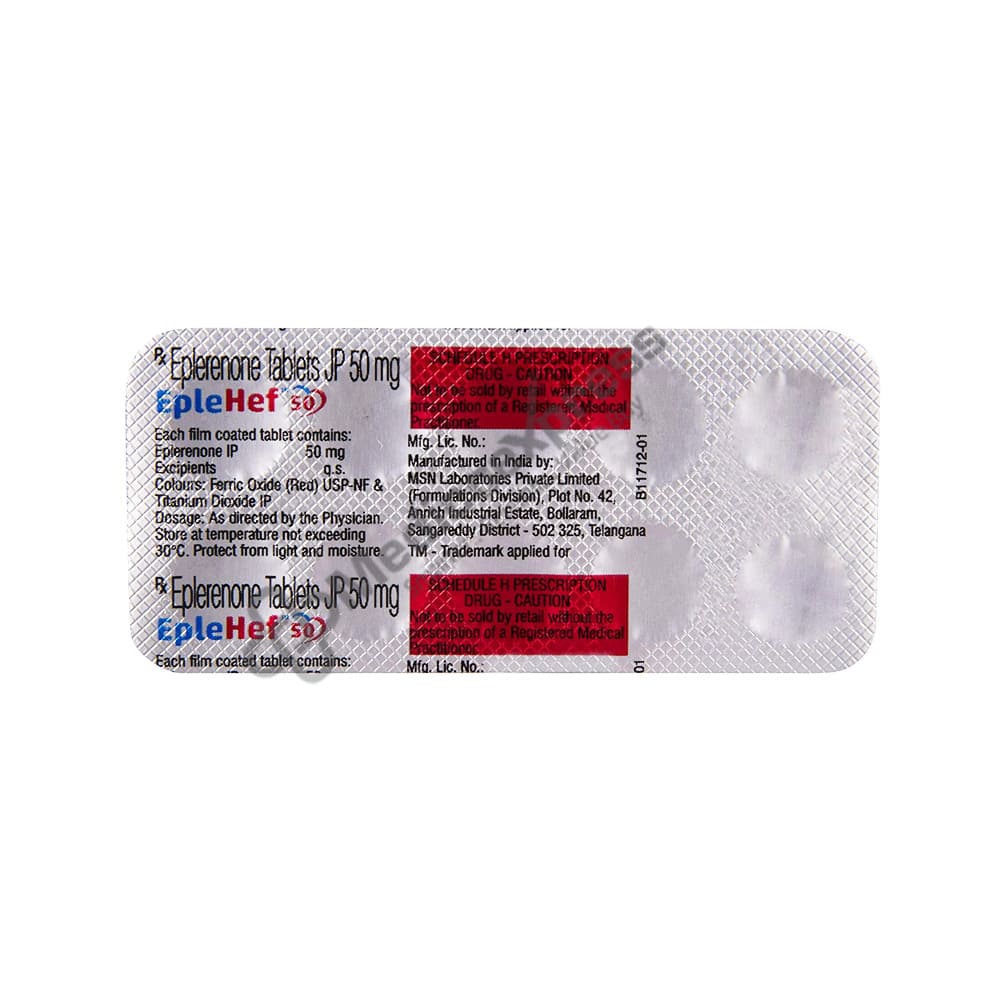 EPLEHEF 50MG TABLET 10'S is a diuretic (water pill) medication that is primarily used to treat hypertension (high blood pressure). It also keeps the potassium level in the bloodstream stable, removes excess water from the body, and prevents hypertension (high blood pressure) caused by edoema (fluid retention).Disclaimer:For More Information Contact Your Physician