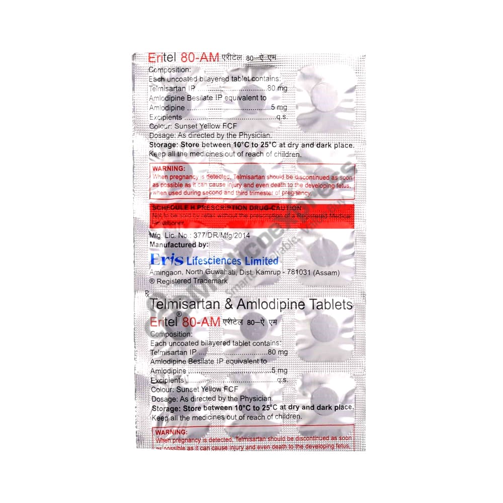 Eritel 80-am tablet 15's belongs to the anti-hypertensive medication class, which is primarily used to treat high blood pressure (hypertension).Disclaimer:For more information contact your physician