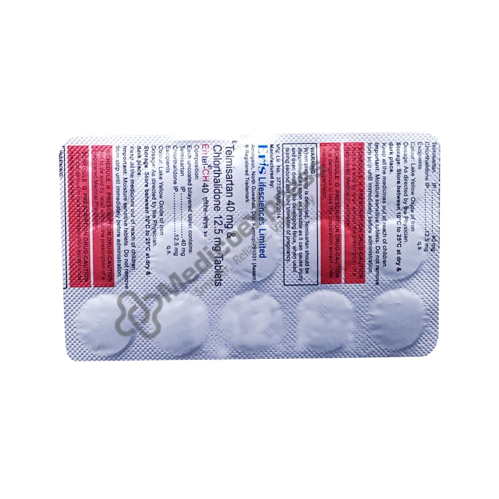 Eritel ch 40 tablet 15's an anti-hypertensive medication used to treat high blood pressure (high blood pressure).Disclaimer:For more information contact your physician