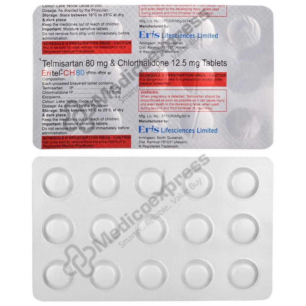 Eritel ch 80 tablet 15's an anti-hypertensive medication used to treat high blood pressure (high blood pressure).Disclaimer:For more information contact your physician