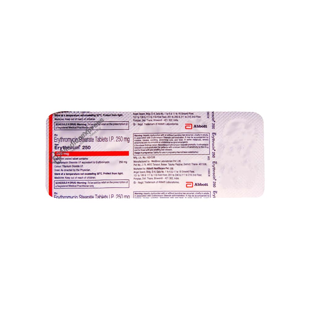 Erythrocin 250 Tablet 10 is part of a class of drugs known as macrolide antibiotics. It is commonly used to treat chest infections (pneumonia), skin conditions (acne and rosacea), dental abscesses (an infection-caused pocket of pus in a tooth), and sexually transmitted infections.Disclaimer:For More Information Contact Your Physician