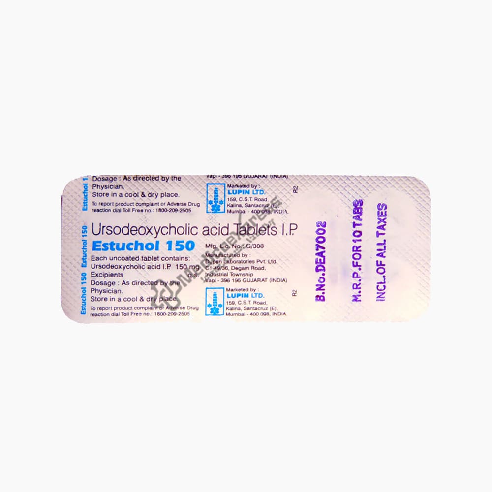 Estuchol 150Mg Tablet 10's Belongs To a Class Of Medications Known As Biliary Agents Or Gall Stone Dissolution Agents, Which Are Used To Treat Gall Stones, Primary Biliary Cholangitis (An Autoimmune Disease Of The Liver), Excess Cholesterol In Bile, And Children Over The Age Of 6 With Cystic Fibrosis Related Biliary And Liver Diseases.Disclaimer:For More Information Contact Your Physician
