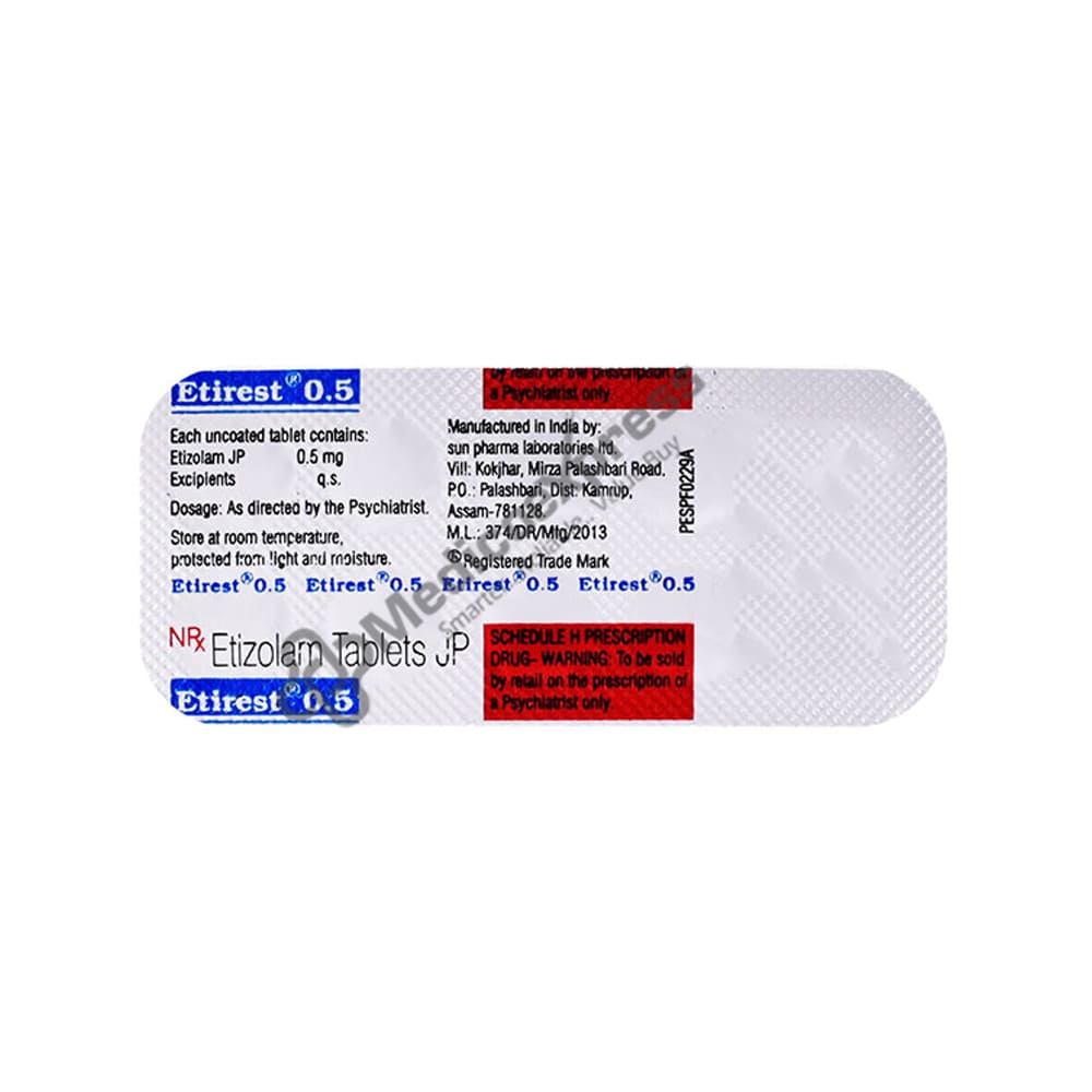 Etirest 0.5 Tablet is a prescription medicine used to treat short-term anxiety and insomnia. It binds to specific receptor sites in the brain and calms the brain. Therefore, it provides effective relaxation to the brain.Disclaimer:For More Information Contact Your Physician