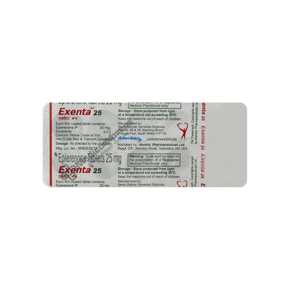 EXENTA 25 TABLET 10'S is a diuretic (water pill) medication that is primarily used to treat hypertension (high blood pressure). It also keeps the potassium level in the bloodstream stable, removes excess water from the body, and prevents hypertension (high blood pressure) caused by oedema (fluid retention). Blood pressure measures the amount of force our hearts use to pump blood to all parts of our bodies. Hypertension is a chronic condition characterised by elevated blood pressure. This condition can cause hardening of the arteries (blood vessels), reducing blood and oxygen flow to the heart.Disclaimer:For More Information Contact Your Physician