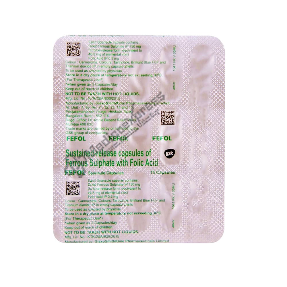 Fefol Spansule Capsule 15's Belongs To a Class Of Drugs Known As 'Haematinics,' Which Are Primarily Used To Treat Anaemia (Deficiency Of Iron And Haemoglobin).Disclaimer:For More Information Contact Your Physician