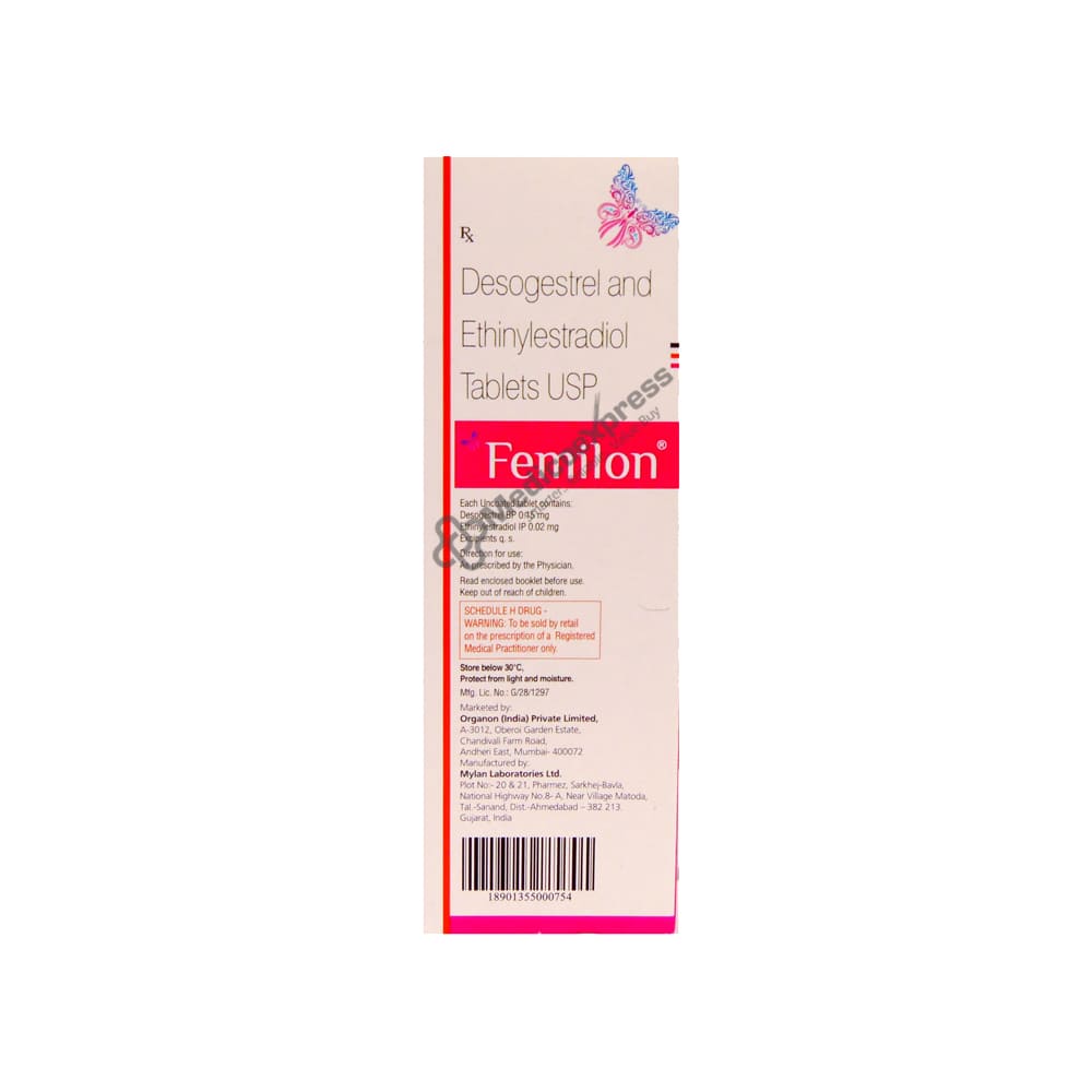 Femilon Tablet 21's an oral hormonal combination drug that contains Desogestrel and Ethinylestradiol and is primarily used for contraception and the treatment of dysmenorrhea (irregular and painful periods).Disclaimer:For More Information Contact Your Physician