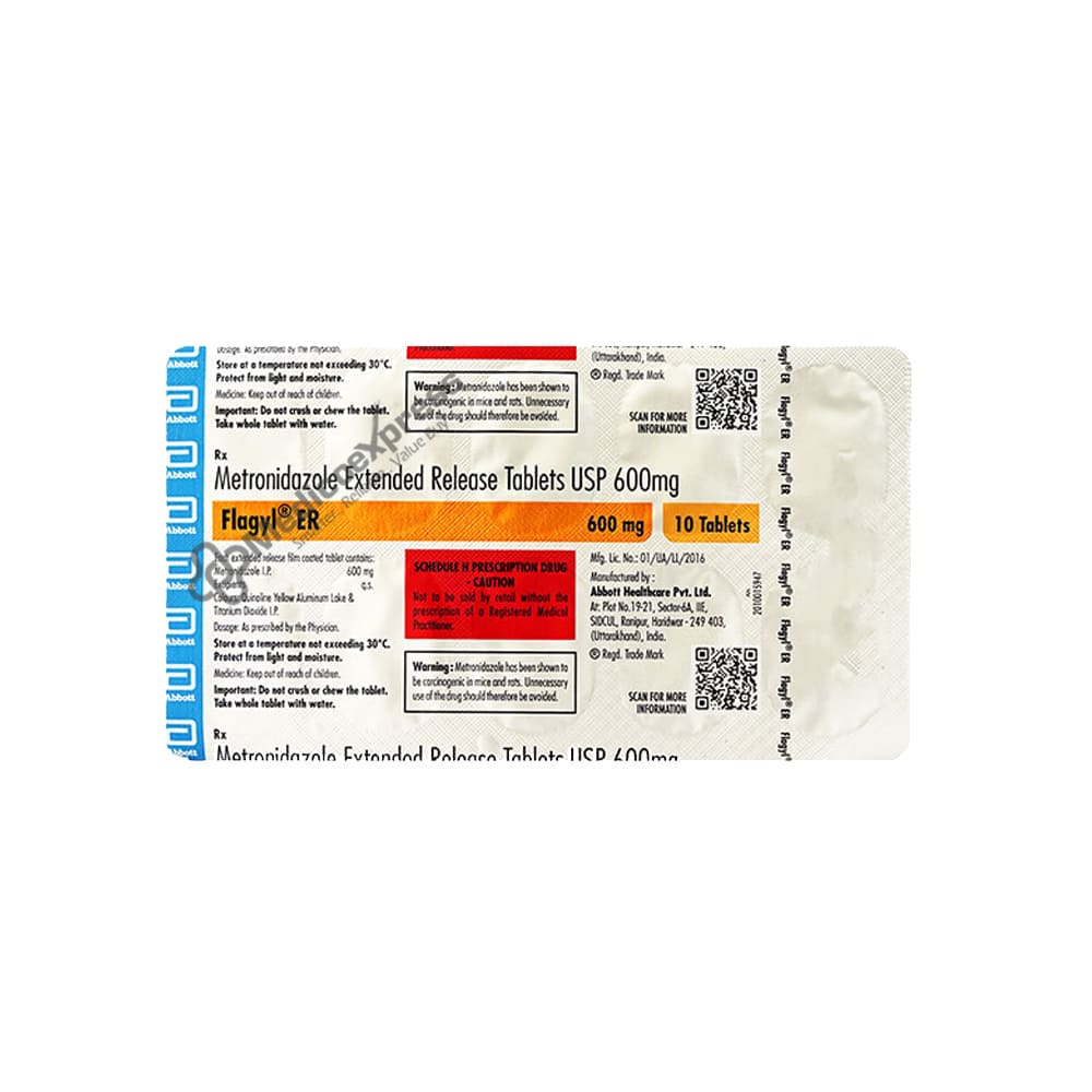 Flagyl ER Tablet 10 belongs to a class of medications known as anti-microbial agents, which are used to treat bacterial infections of the blood, brain, lung, bone, pelvic area, stomach lining, intestines, gum, teeth, and wound infection after surgery.Disclaimer:For More Information Contact Your Physician