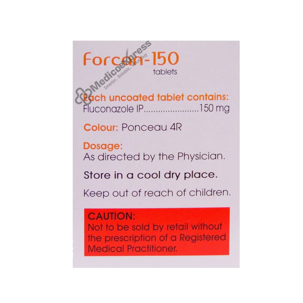 Forcan Tablet 150 mg is an antifungal medication that is used to treat a variety of infections caused by fungi and yeast. When a fungus invades and affects any part of the body, including the mouth, throat, oesophagus, lungs, bladder, genital area, and blood, it causes a fungal infection.Disclaimer:For More Information Contact Your Physician