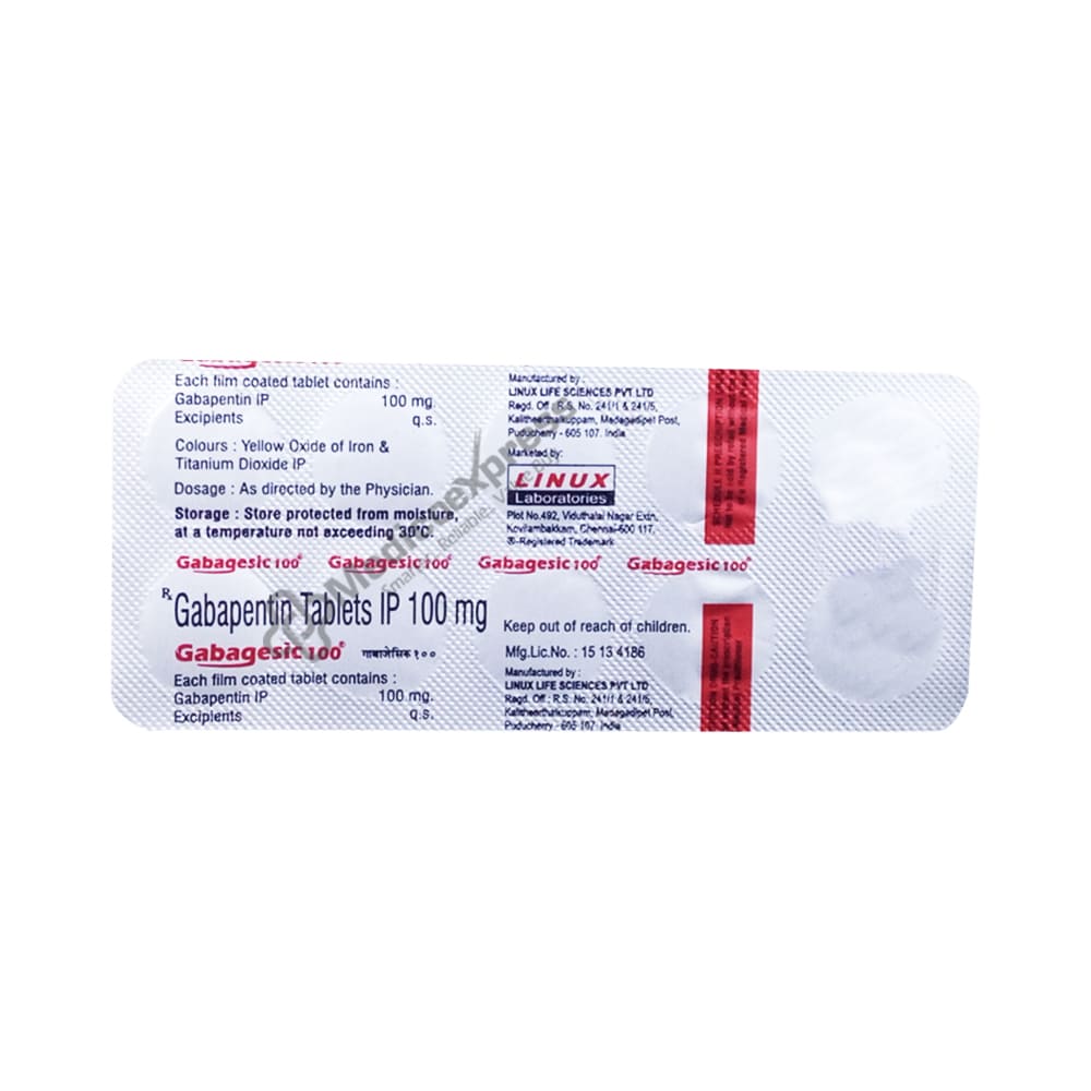 Gabagesic 100mg tablet 10's an anticonvulsant (gabapentin) and antidepressant (nortriptyline) combination medication used to treat neuropathic pain.Disclaimer:For more information contact your physician