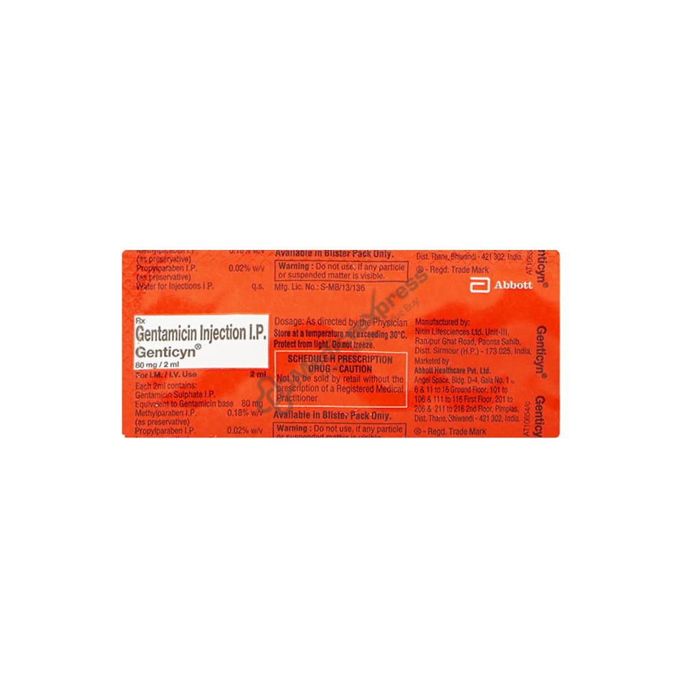 Genticyn Injection 80 mg 2 ml is an antibiotic that is primarily used to treat serious bacterial infections. Bacterial infection happens when harmful bacteria multiply in the body and cause illness. It can infect and multiply in any part of the body.Disclaimer:For More Information Contact Your Physician