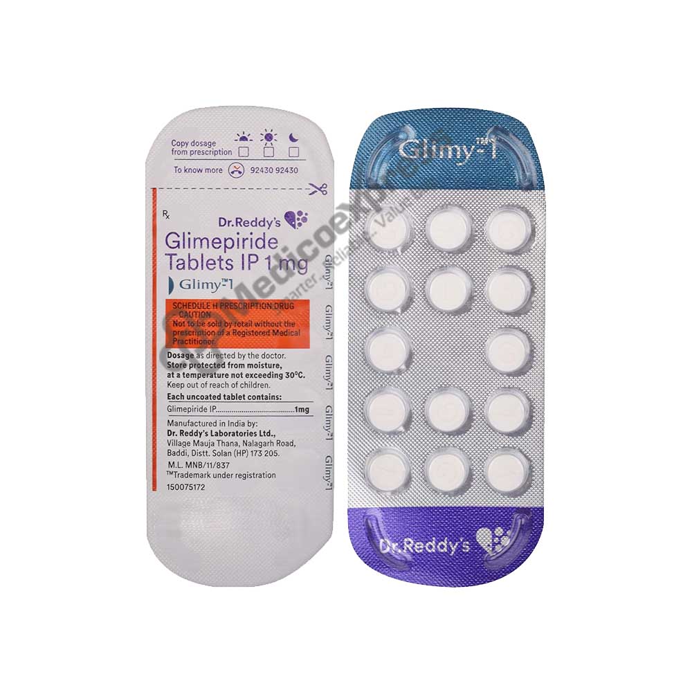 Glimy 1 mg Tablet 14s is a member of the antidiabetic drug class known as "sulfonylureas," which is used to treat Type 2 diabetes mellitus and lower elevated blood sugar levels (non-insulin-dependent diabetes mellitus - NIDDM). If your body does not create enough insulin or if your body's insulin does not function as it should, type 2 diabetes may develop. Particularly after meals, insulin is a hormone that aids in lowering blood sugar levels. The Glimy 1 Tablet 14s include glimepiride, which operates on beta cells, the pancreas' insulin-secreting cells, by activating calcium channels on the cells and allowing insulin to leave the cell. This insulin subsequently causes every cell in the body to absorb and use glucose, bringing down elevated blood glucose levels.Disclaimer:For more information contact your physician.