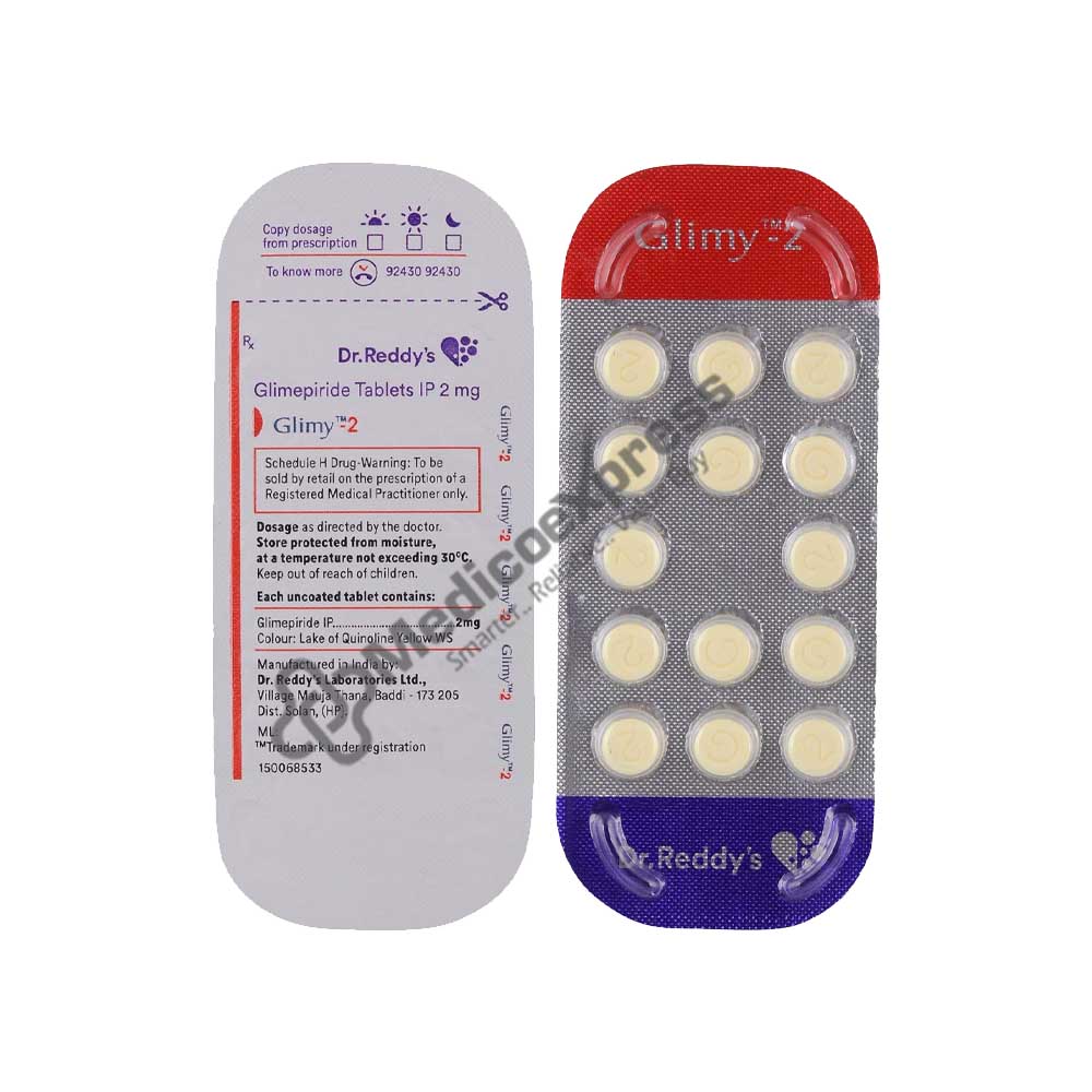 Glimy 2 mg Tablet 14s is a member of the antidiabetic drug class known as "sulfonylureas," which is used to treat Type 2 diabetes mellitus and lower elevated blood sugar levels (non-insulin-dependent diabetes mellitus - NIDDM). If your body does not create enough insulin or if your body's insulin does not function as it should, type 2 diabetes may develop. Particularly after meals, insulin is a hormone that aids in lowering blood sugar levels. The Glimy 2 Tablet 14s include glimepiride, which operates on beta cells, the pancreas' insulin-secreting cells, by activating calcium channels on the cells and allowing insulin to leave the cell. This insulin subsequently causes every cell in the body to absorb and use glucose, bringing down elevated blood glucose levels.Disclaimer:For more information contact your physician.