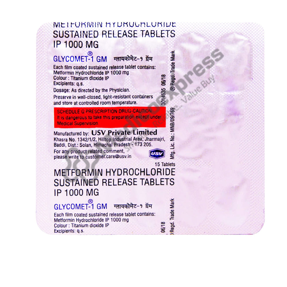 Glycomet 1 GM Tablet 15's belongs to a class of anti-diabetic medications known as biguanides, which are used to treat diabetes. Disclaimer: For More Information Contact Your Physician